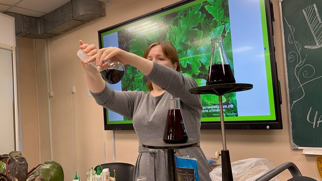 учитель химии Людмила Григорьевна Ряснова — мастер увлекательных опытов и объяснений;